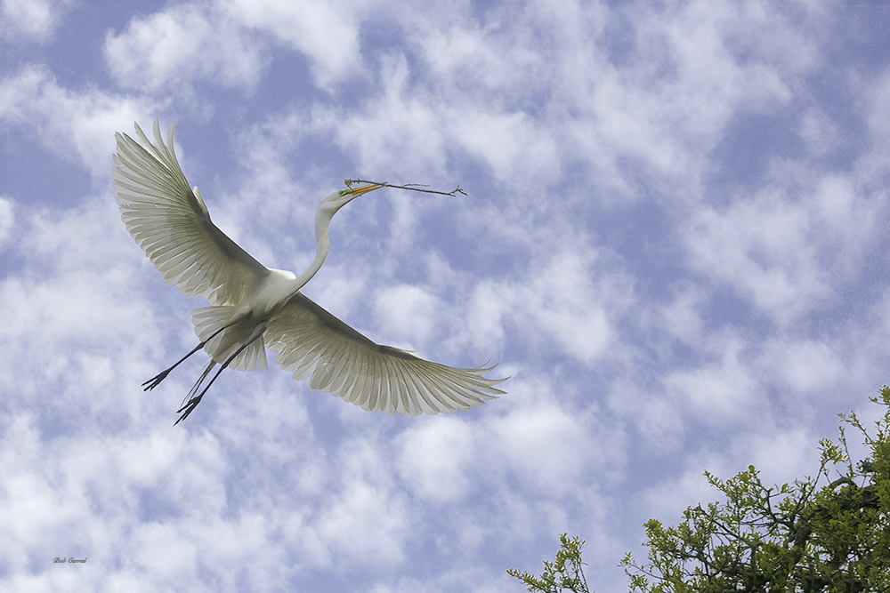 Great Egret with Twig Published July 26, 2015 at 1000 × 667 in Great Egret with Twig Great Egret with Twig #428 photo, Great Egret flying with a twig, St Augusrine Alligator Farm, FL