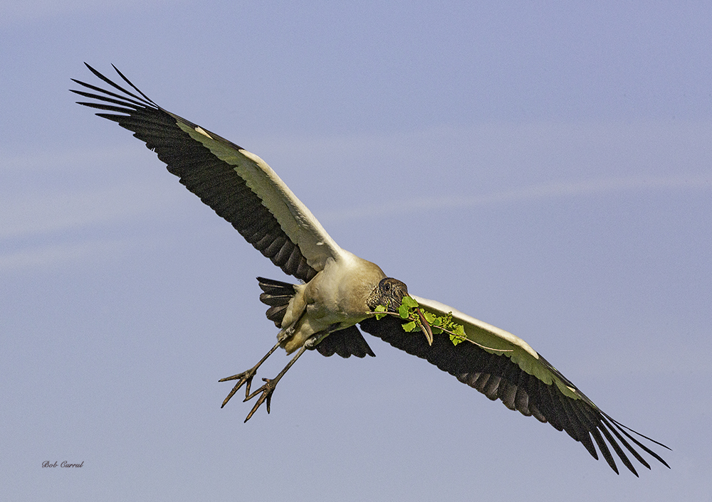 522.1 Wood Stork with Branch copy Published August 23, 2018 at 1000 × 706 in Wood Stork with Branch # 522 photo, Wood Stork flying with Branch, St Augustine FL