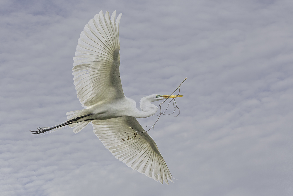 Snowy Egret Taking Off Published May 2, 2019 at 1000 × 668 in Snowy Egret Taking Off Snowy Egret Taking Off 201806290002 Photo, Great Egret Flying with Branch, St Augustine, FL